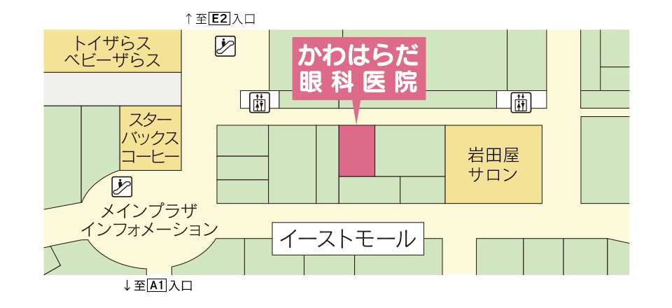 A1メインプラザ入口、又は E2ノースモール入口が便利です。